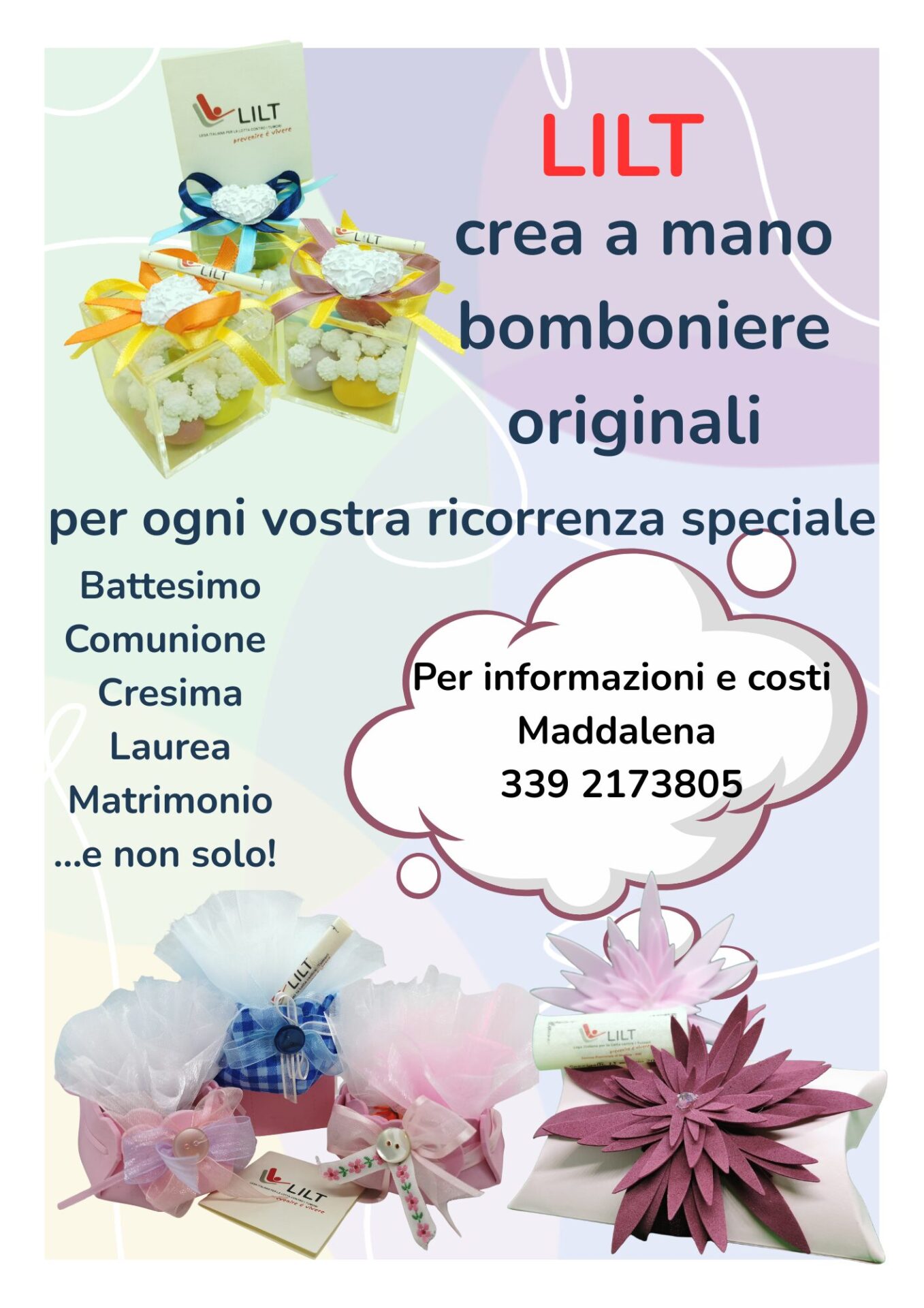 In occasione di eventi quali matrimonibattesimicresime e prime comunioni le persone interessate possono decidere di rinunciare alle tradizionali bomboniere devolvendo la cifra destinata a tale scopo alla Lega Italiana per la Lotta contro i Tumori.