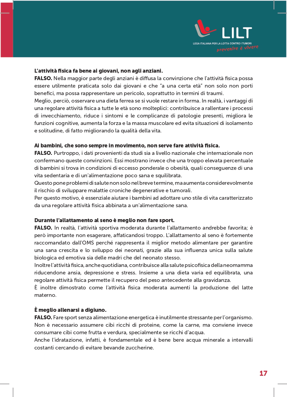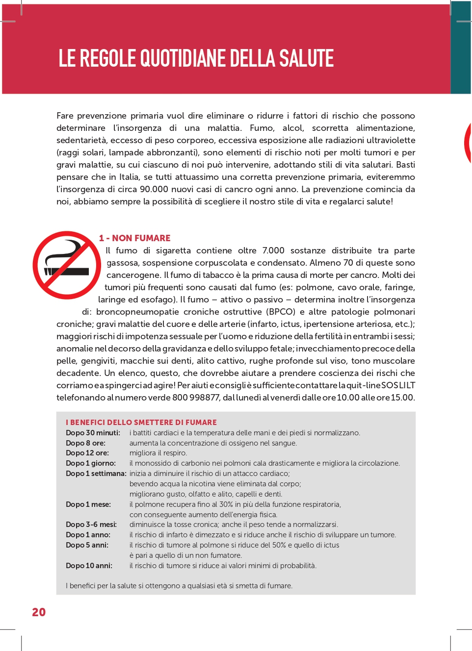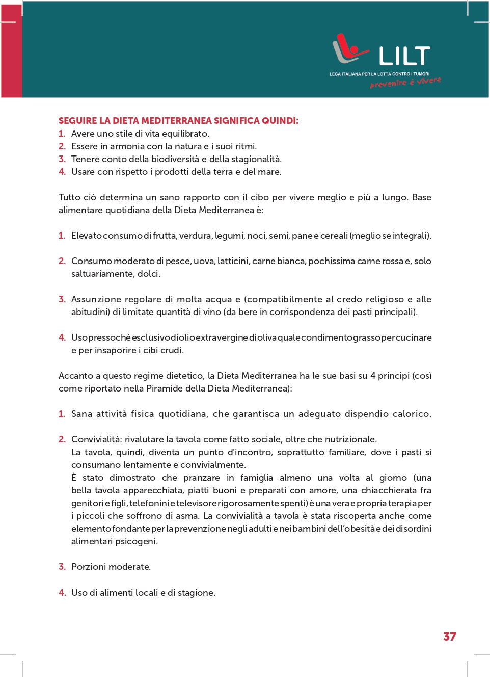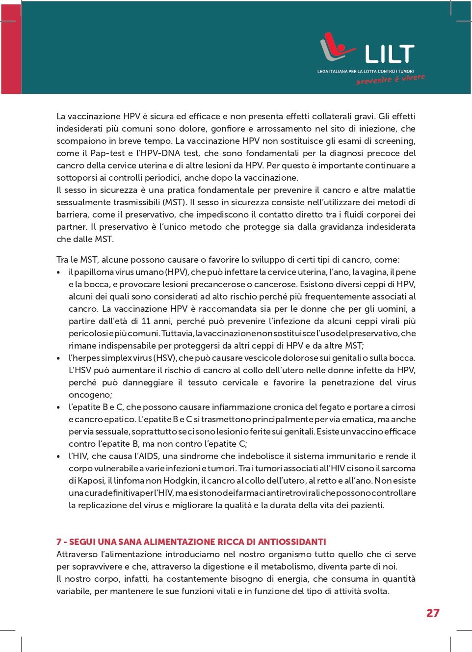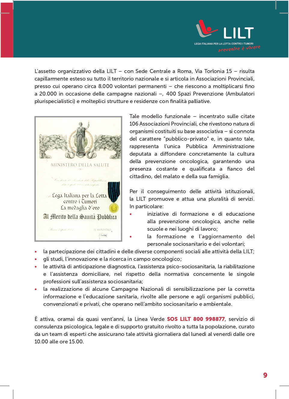 Con l’arrivo della primavera si svolge uno dei principali appuntamenti della LILT: la Campagna della “Settimana Nazionale per la Prevenzione Oncologica”. Tale Campagna, che è stata istituita con Decreto del Presidente del Consiglio nel 2001, ha lo scopo di diffondere la cultura della prevenzione e l’importanza di corretti e sani stili di vita, quali: non fumare, non bere alcolici, alimentarsi adeguatamente nella giusta stagionalità, fare attività fisica per combattere la sedentarietà e tutte le malattie ad essa correlate, riposare, effettuare controlli periodici per la diagnosi precoce.